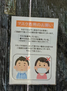 「当店では以下に該当するお客様にご遊技中であっても注意を促す場合がございます。 マスクを着用していない」