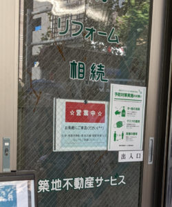 (マスクお願い店)築地不動産サービス 2023-07-30 最終更新日時 : 2023-07-30 taka_minami 築地不動産サービス不動産仲介業東京都中央区築地2丁目11−11確認日 2023/07/25「下記のご協力をお願いします マスクの着用」 FacebookXBlueskyHatenaCopy