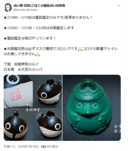 (マスク必須店)銀座 占いの白寿 2024-07-21 最終更新日時 : 2024-07-21 taka_minami 銀座 占いの白寿占い店東京都中央区銀座1-15-13東京メトロ有楽町線 銀座一丁目駅確認日 2024/07/20(※Ⅹからの情報となります)「対面鑑定時は必ずマスク着用でヨロシクです」「コロナの影響でトイレはお貸しできません」 FacebookXBlueskyHatenaCopy